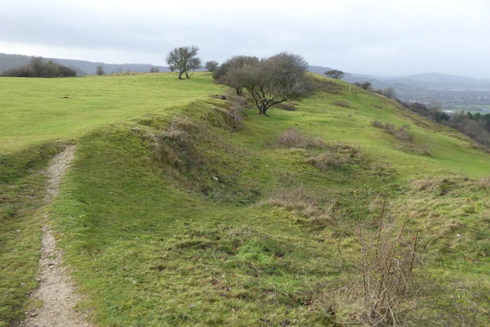 The trail begins near Gloucestershire Airport, a notable landmark in the region. As you set off, you'll traverse through a mix of open fields and wooded areas. The first significant ascent is Churchdown Hill, located approximately 5 km (3 miles) from the start. This hill offers panoramic views of the surrounding countryside and is a great spot for a short break. The elevation gain here is about 100 meters (328 feet), making it a moderate climb.