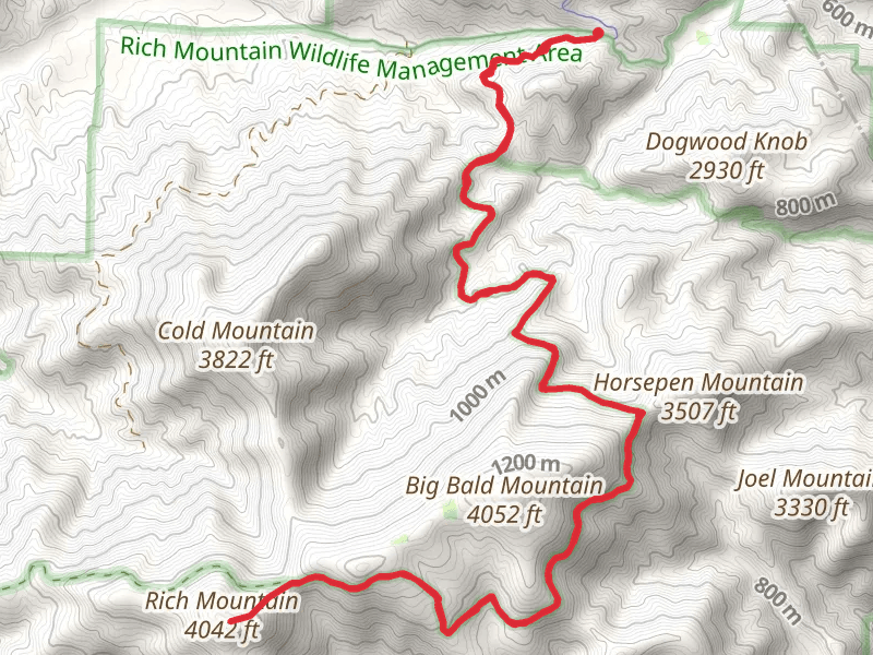 Rich Mountain from Rock Creek Road and the trail with the least amount of climbing is the