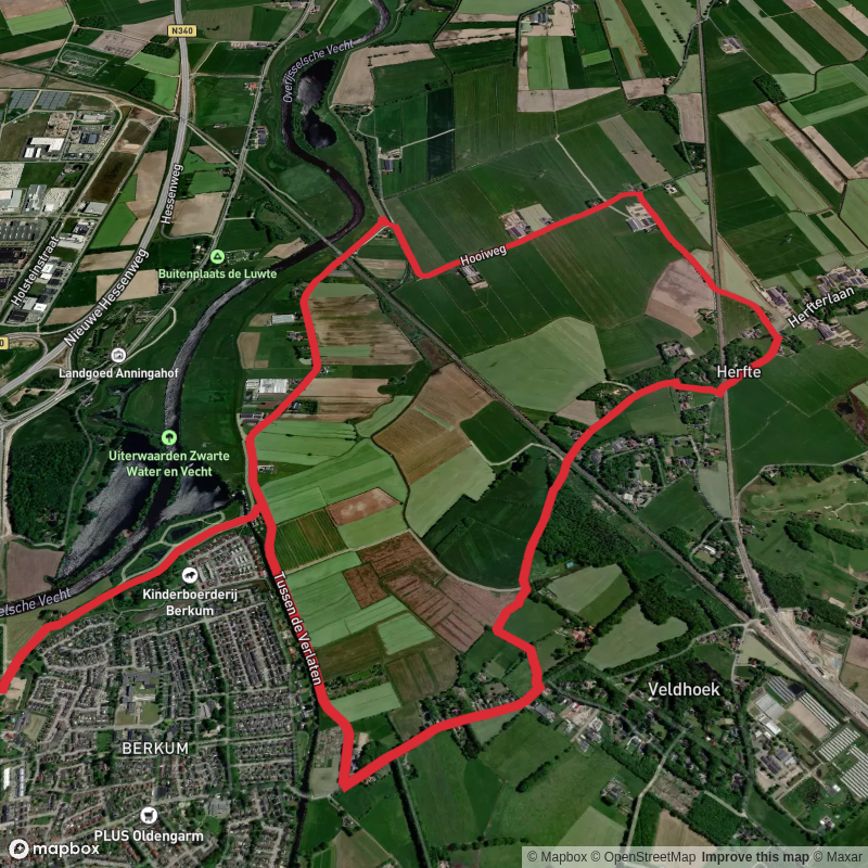 Natuurgebied vreugderijkerwaard Loop at 1.8 km. Get off line access to Bus Stop, playground, gate, and parking locations and much more with a Hiiker subscription.