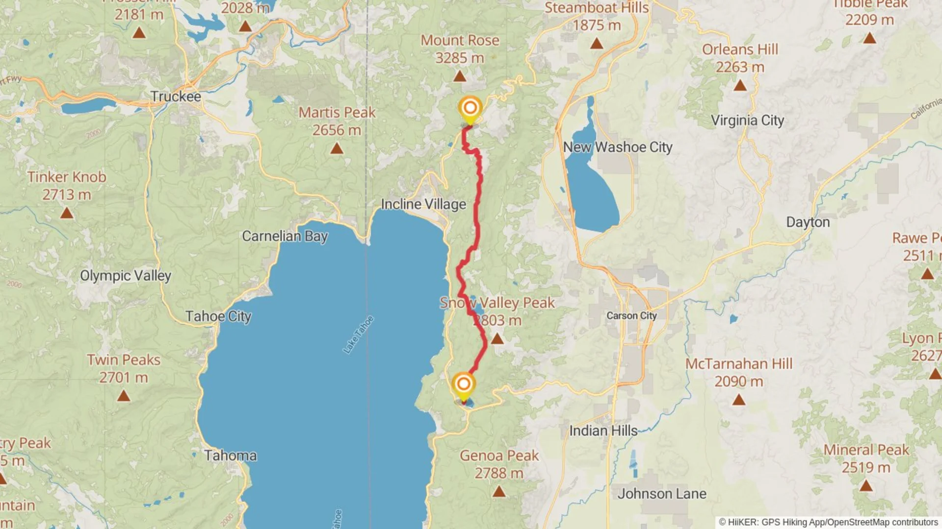 The Tahoe Rim Trail to Spooner Lake is a 29.5 km trail that starts in Incline Village, Washoe County, Nevada. Based on our data, the hike is graded as Easy. For information on how we grade trails, please read measuring the difficulty of a hiking trail on hiiker. Also, check our latest community posts for trail updates. This hike can be completed in approx 6 hrs 27 mins. Caution is advised on trail times as this depends on multiple variables. For more info read about how we calculate hike time.
