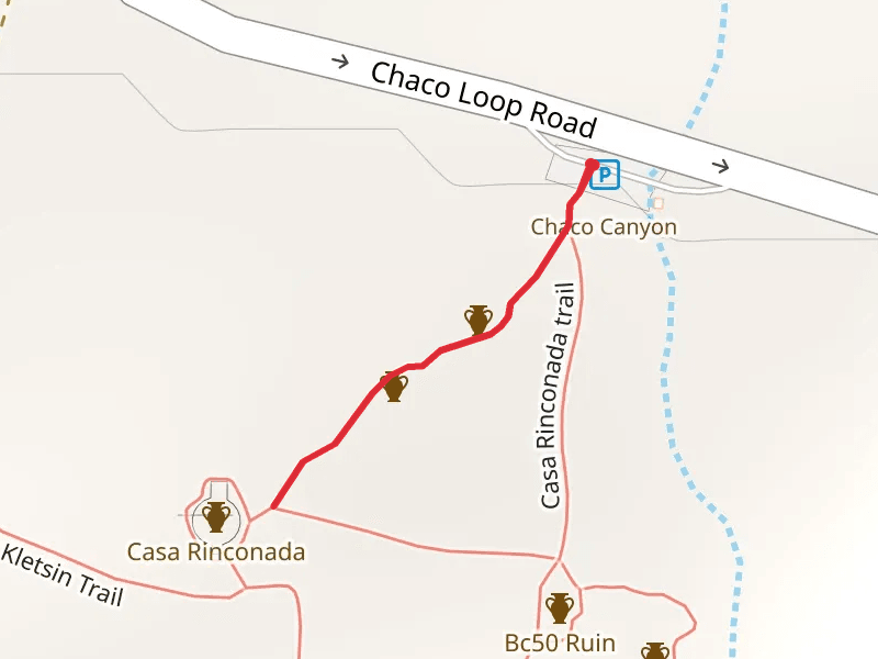 Chaco Entrance Road and the trail with the least amount of climbing is the