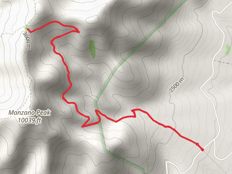 Manzano Peak via Kayser Mill Trail and the trail with the least amount of climbing is the