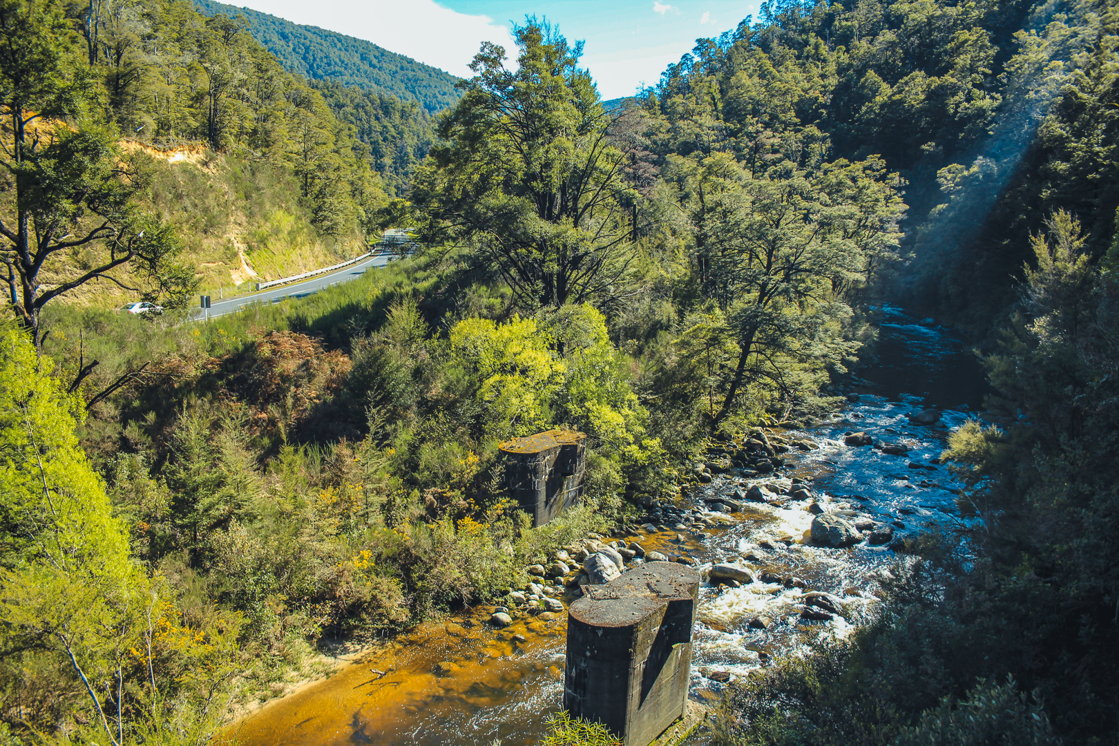 An image depicting the trail Kawatiri Historic Railway Walk and its surrounding area.