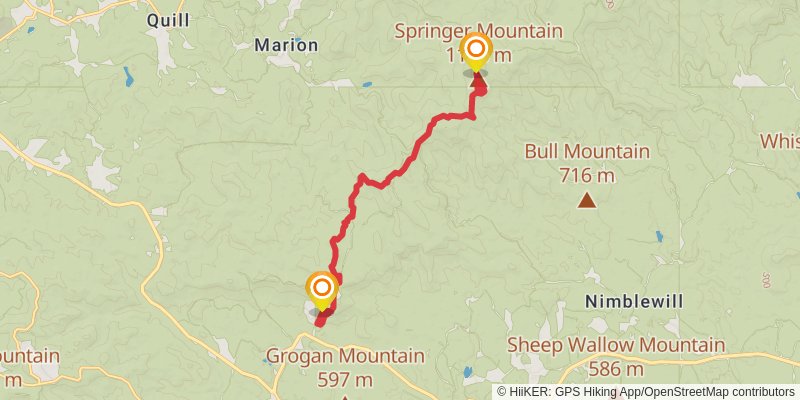 Starting at: Springer Mountain, Ellijay, Fannin County, 30536