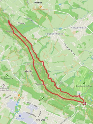 Nestled in the scenic landscapes of North Rhine-Westphalia, the trail from Mielberg to Werther offers a delightful journey through the heart of Germany's natural beauty. Spanning approximately 18 kilometers (about 11 miles) with an elevation gain of around 200 meters (approximately 656 feet), this point-to-point trail is perfect for those seeking an easy yet rewarding hike.
