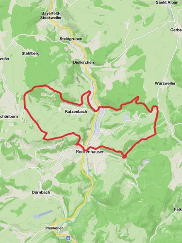 Nestled in the picturesque region of Donnersbergkreis, Germany, the trail from Rockenhausen to Obermoschel via Burg Landsberg offers a captivating journey through history and nature. Spanning approximately 19 kilometers (about 11.8 miles) with an elevation gain of around 500 meters (approximately 1,640 feet), this point-to-point trail is rated as medium in difficulty, making it suitable for moderately experienced hikers.