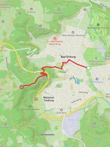 The trailhead is conveniently located near the town of Bad Driburg, which is accessible by both car and public transport. If you're driving, you can reach Bad Driburg via the B64 highway. For those relying on public transport, the Bad Driburg railway station is well-connected, with regular train services from major cities like Paderborn and Kassel. From the station, it's a short walk or taxi ride to the trailhead.