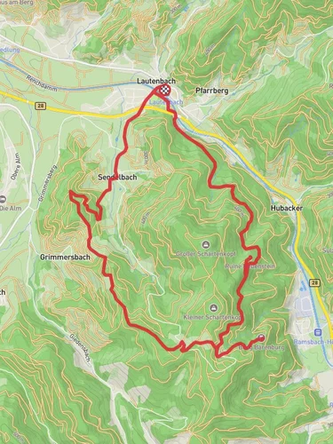 Nestled in the enchanting Black Forest region of Germany, the Lautenbach and Kleiner Schartenkopf Loop offers a challenging yet rewarding hiking experience. This 17 km (approximately 10.5 miles) loop trail boasts an elevation gain of around 1100 meters (approximately 3600 feet), making it a demanding trek suitable for experienced hikers. The trailhead is conveniently located near Ortenaukreis, a district known for its picturesque landscapes and rich cultural heritage.