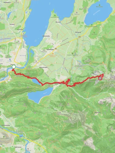 The trailhead is conveniently located near the charming town of Füssen, which is accessible by both car and public transport. If you're driving, you can reach Füssen via the A7 motorway, which connects to major cities like Munich and Stuttgart. For those opting for public transport, Füssen is well-served by regional trains from Munich and Augsburg, with the train station just a short distance from the trailhead.