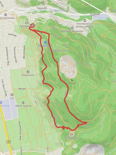 The trailhead is conveniently located near the town of Rhein-Neckar-Kreis. For those traveling by car, you can park at the designated parking area near the trailhead. If you prefer public transport, the nearest major city is Heidelberg. From Heidelberg, you can take a regional train to the town of Neckargemünd, followed by a local bus service that will bring you close to the starting point of the trail. Be sure to check the latest schedules and routes for public transport options.