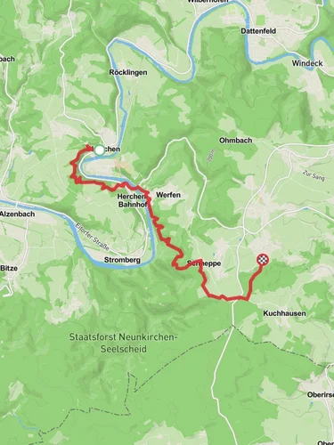 Nestled in the picturesque region of Rhein-Sieg-Kreis, Germany, the Herchen to Schladern Walk via Sieg offers an enchanting journey through lush landscapes and historical sites. This point-to-point trail stretches approximately 18 kilometers (about 11 miles) with an elevation gain of around 700 meters (approximately 2,300 feet), making it a moderately challenging hike suitable for those with some hiking experience.