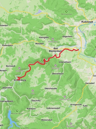 The trailhead is conveniently located near Saalfeld-Rudolstadt, Germany. For those traveling by public transport, you can reach Bad Blankenburg by taking a train to the Bad Blankenburg (Thür) station, which is well-connected to major cities in the region. From the station, it's a short walk to the start of the trail. If you're driving, there are parking facilities available near the trailhead, making it easy to begin your adventure.