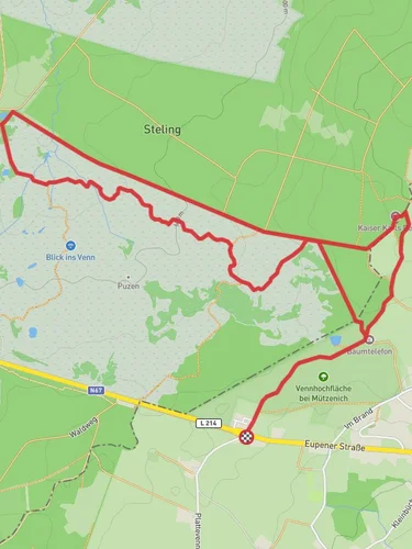 Nestled in the picturesque region near Städteregion Aachen, Germany, the Steling and Brackven Loop offers a delightful hiking experience for those seeking a leisurely day in nature. This 18 km (approximately 11 miles) loop trail is characterized by its gentle terrain, with an elevation gain of around 100 meters (328 feet), making it accessible for hikers of all skill levels.
