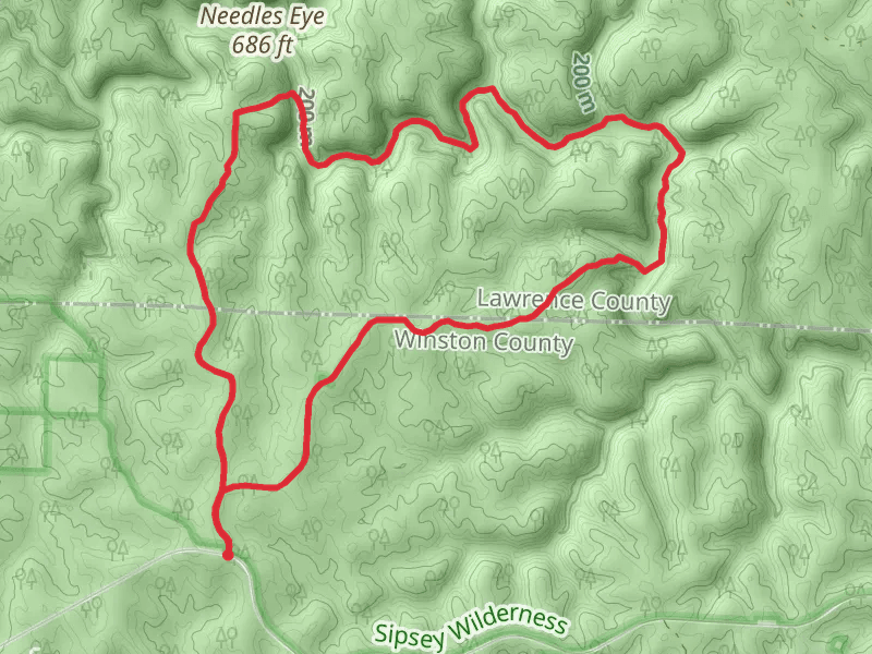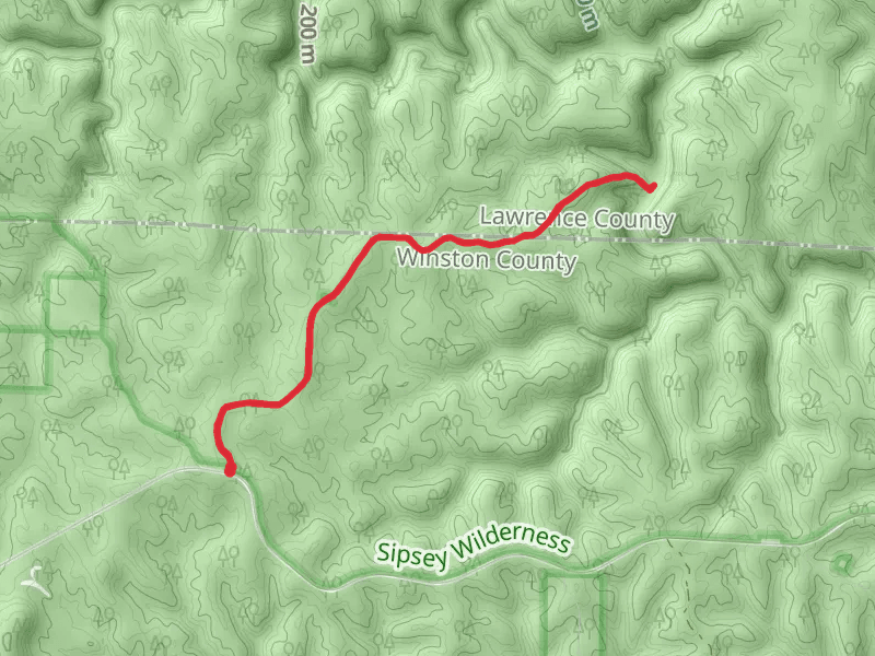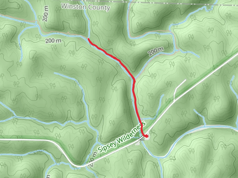 Borden Creek Wild Hiking and Sipsey Wild Hiking Trail at 3.3 km. Get off line access to Peak, Water, and Campsite locations and much more with a Hiiker subscription.