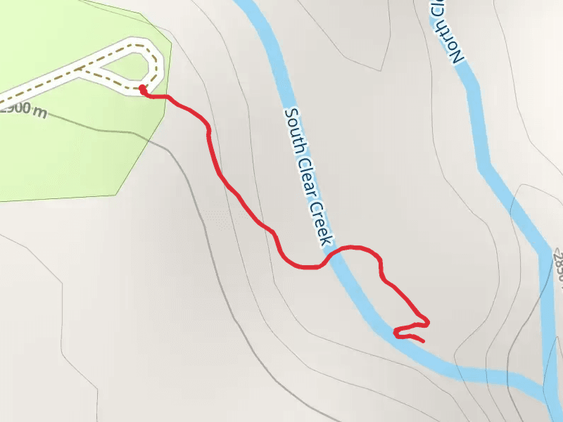 South Clear Creek Falls Nature Trail at 672 m. Get off line access to Viewpoint, Campsite, Peak, and Water locations and much more with a Hiiker subscription.