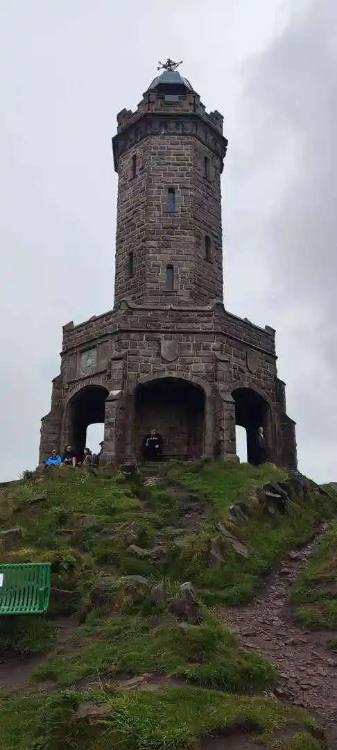 One of the trail's highlights is the Jubilee Tower, also known as Darwen Tower. This Victorian-era structure was erected in 1897 to commemorate Queen Victoria's Diamond Jubilee and to celebrate the victory for public access to the moor. Standing at an elevation of 1,227 feet (374 meters), the tower provides panoramic views and serves as a significant landmark approximately 3 kilometers (nearly 2 miles) into the hike.