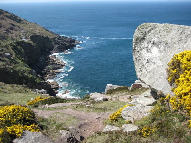 The trail is rich in biodiversity. In spring and summer, the coastal path is adorned with wildflowers like sea thrift and heather. Inland, you might spot rabbits, foxes, and a variety of bird species. The area is also known for its unique geology, with granite outcrops and ancient stone walls dotting the landscape.