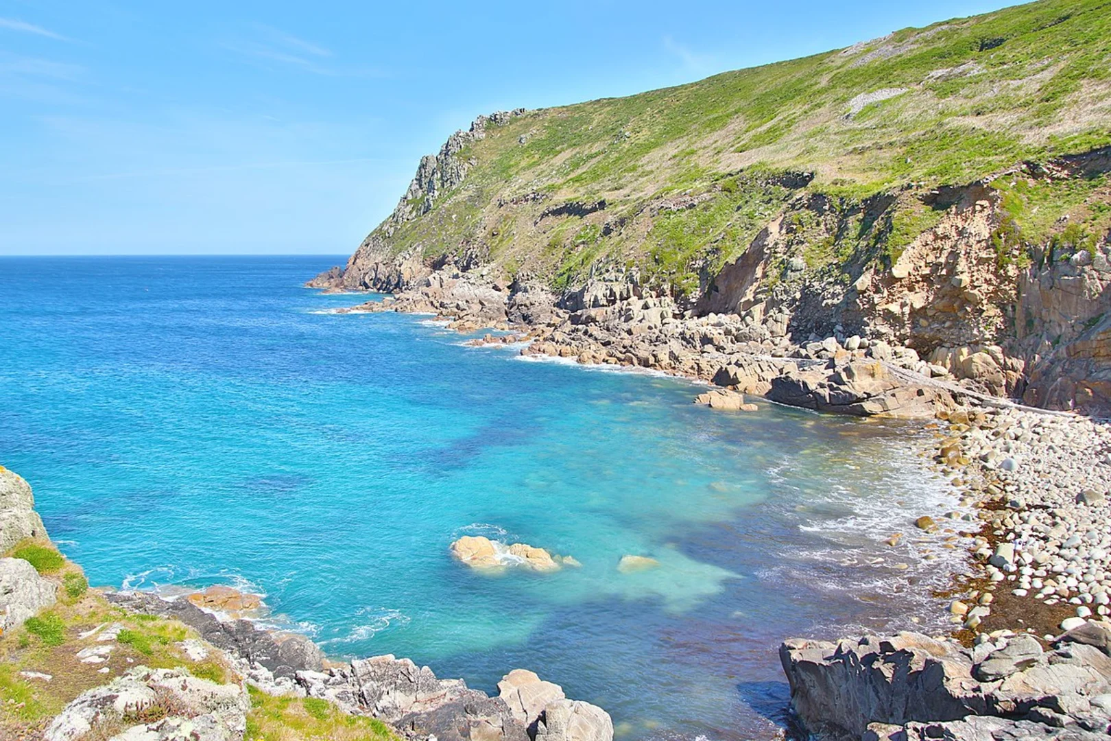 The trail begins in Treen, a charming village known for its traditional Cornish cottages and stunning coastal views. As you set off, you'll immediately be greeted by the dramatic cliffs and sweeping vistas of the Atlantic Ocean. The first section of the trail is relatively gentle, allowing you to ease into the hike while enjoying the coastal scenery.