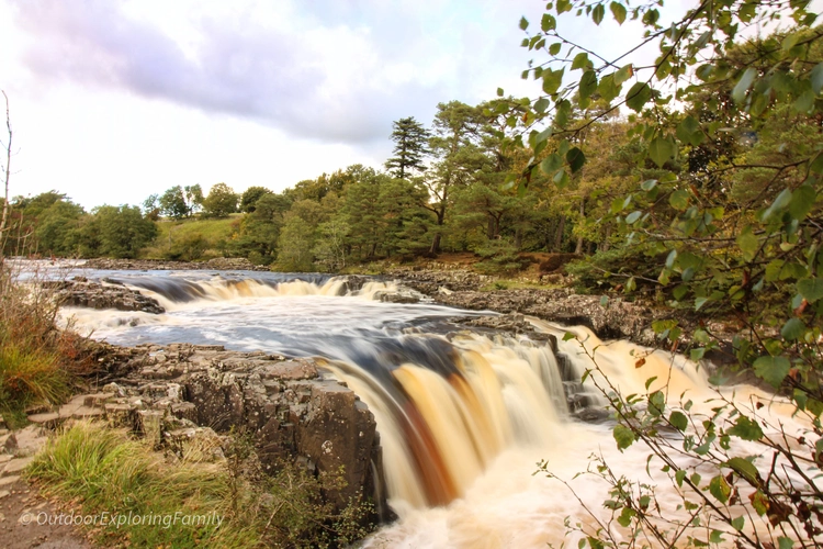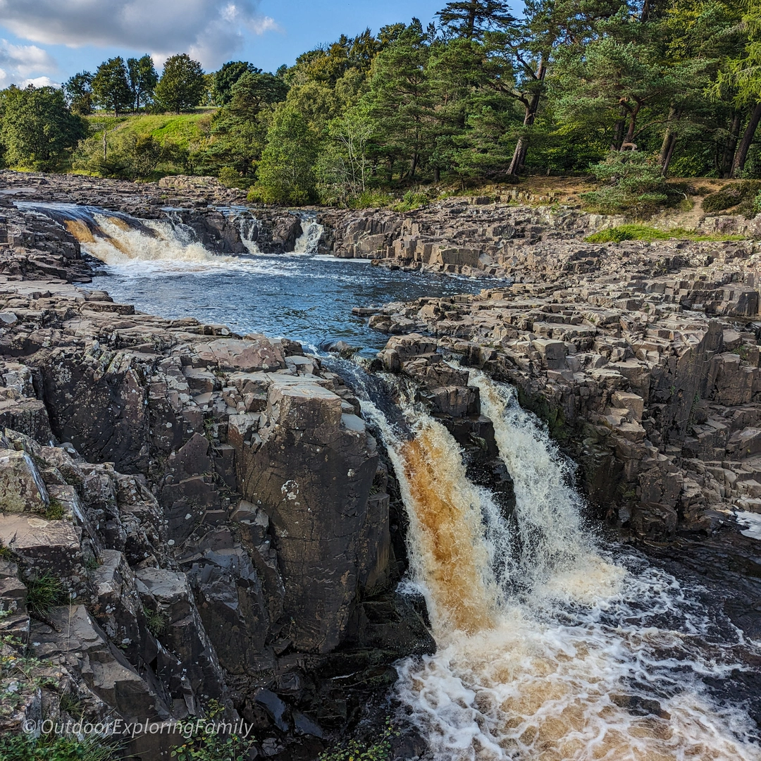 Park at Bowlees Visitor Centre (DL12 0XE), where you’ll also find toilets and a small café. From the car park, follow the path down past the visitor centre, cross the road, and walk through the field towards the river. The route then leads into a small woodland, and within a few minutes you’ll reach Low Force Waterfall, the historic Wynch Bridge, and the two well-known stone sheep sculptures.