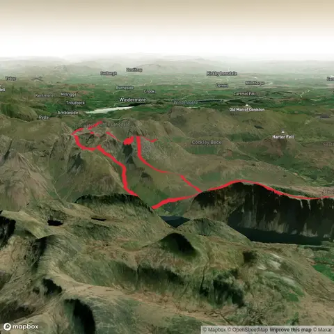 Mickledore and Scafell Pike Loop and the trail with the least amount of climbing is the