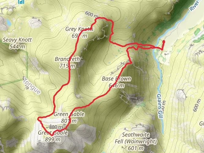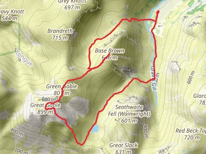 Challenging loop hike from Cumberland (ExtraDifficult), covering about 19.5 km in roughly 8 hours. The route starts and ends near 54.50°N, -3.18°W, likely in the Lake District area, with steep climbs totaling about 1,470 m of ascent and 1,520 m of descent. Expect rugged terrain, sustained ups and downs, and far‑reaching views over valleys and fells, suited to experienced, well‑equipped hikers.