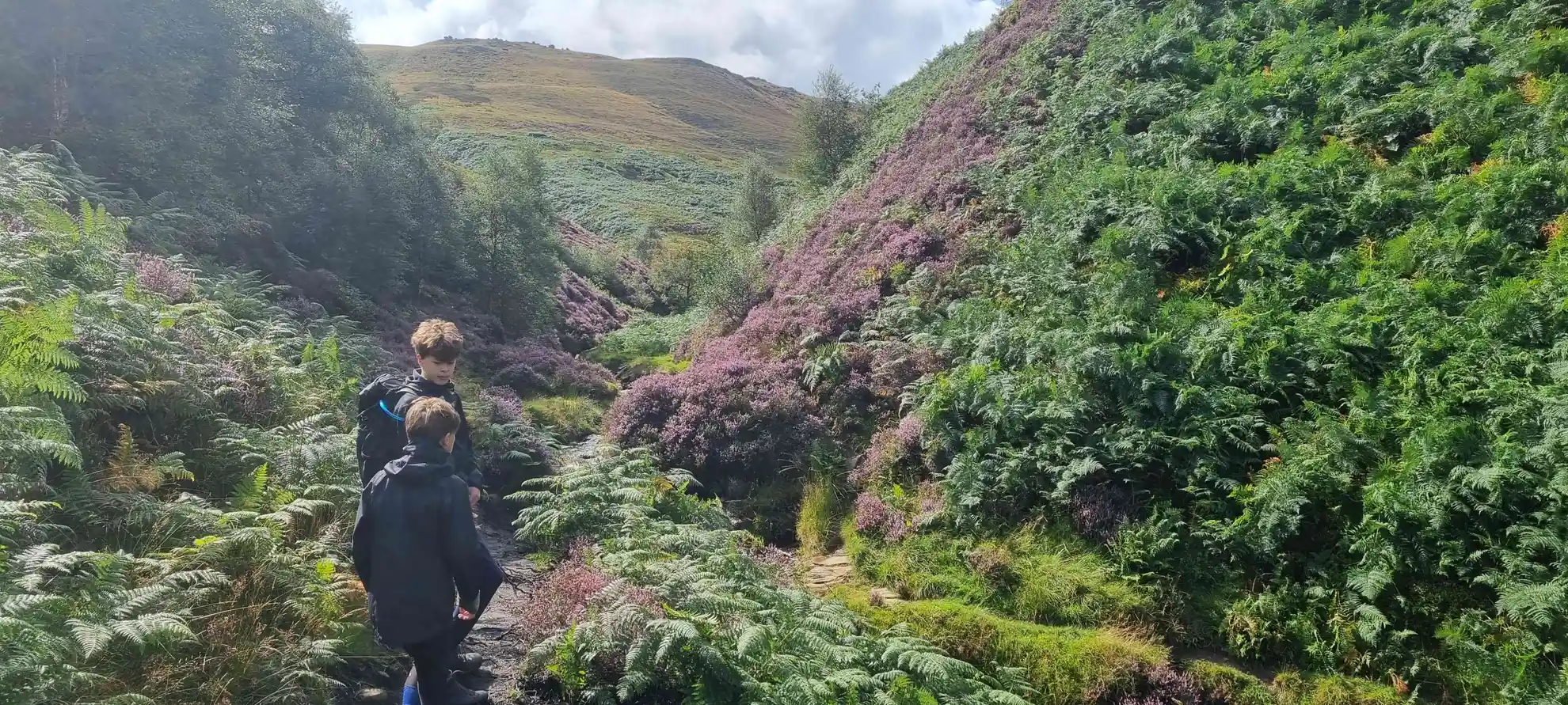 The descent begins after about 7 km (4.3 miles), following a path that drops steeply into the Upper Ashop valley. This section can be boggy, especially after rain, and the path is sometimes indistinct, so careful navigation is needed. The valley itself is quieter than the more popular routes on Kinder, with lush grassland and the occasional sighting of red grouse or kestrel. After crossing the Ashop, the trail climbs gently back towards the starting point, passing through a mix of open moor and sheltered woodland.