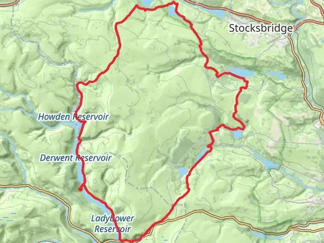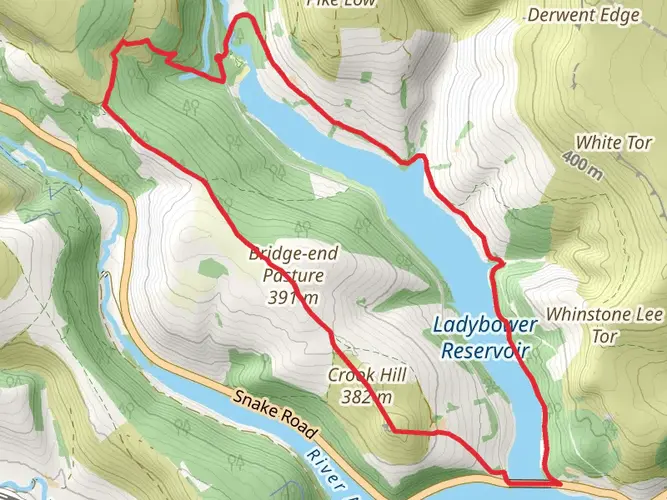 An easy 17.8 km loop from Bamford offering gentle but steady climbs with around 388 m of ascent and 405 m of descent. The route explores the scenic countryside above the Hope Valley with views towards Ladybower and surrounding gritstone edges. Paths are generally straightforward, making this a good longer outing for walkers with basic fitness. Expect a mix of lanes, field paths, and rougher moorland tracks.