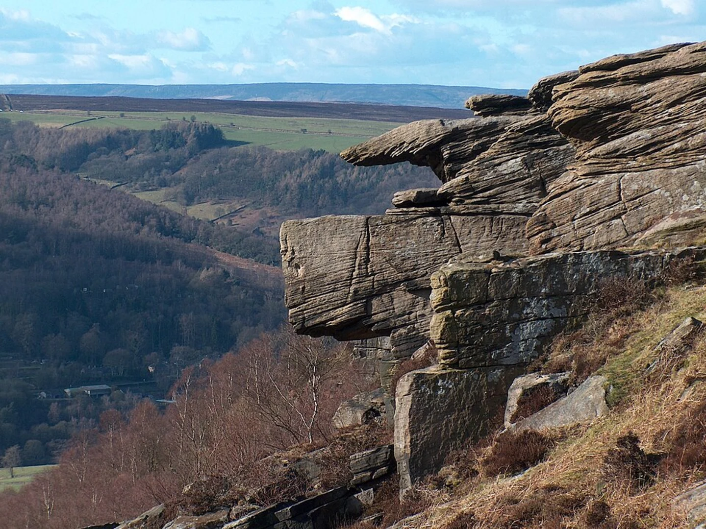 At approximately 1.5 km (0.9 miles) into the hike, you will reach Froggatt Edge, a stunning gritstone escarpment offering panoramic views of the Derwent Valley. This is a perfect spot to take a break and soak in the breathtaking scenery. The edge itself is a popular spot for rock climbing, so you might see climbers scaling the rugged cliffs.