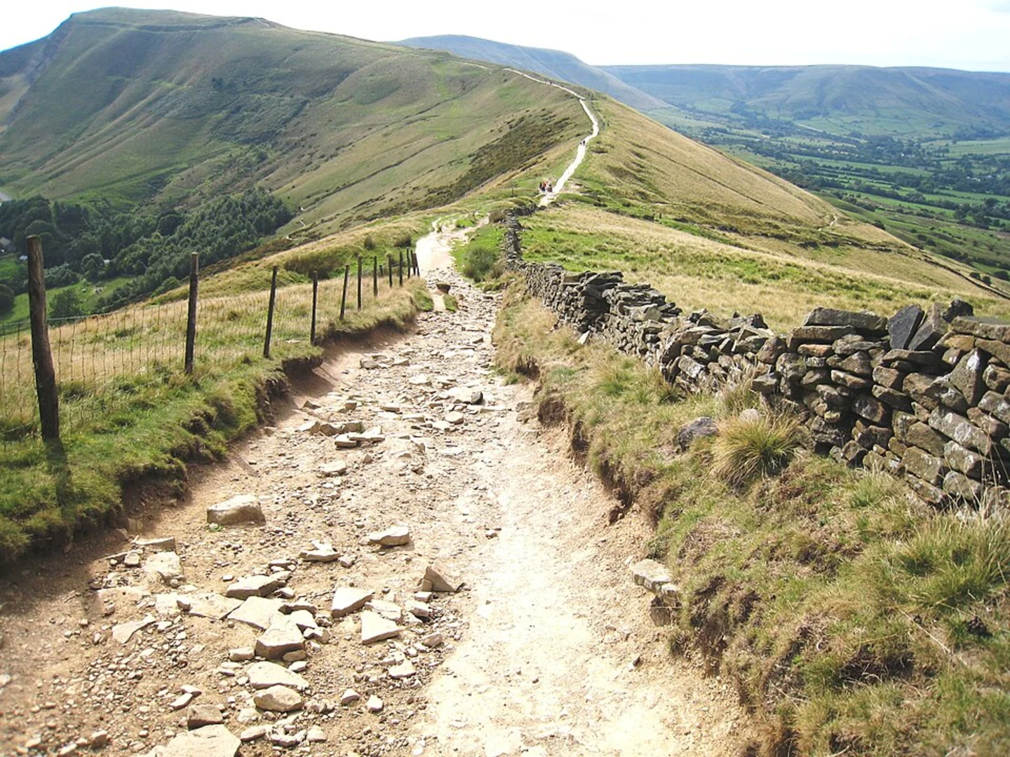 The journey begins with a steady ascent towards Mam Tor, also known as the "Shivering Mountain." This part of the trail covers an elevation gain of about 300 meters (984 feet). Mam Tor is renowned for its striking geological features, including its landslips, which have created a dramatic landscape. At the summit, you'll find the remnants of an ancient hillfort, dating back to the Bronze Age. The panoramic views from here are breathtaking, offering vistas of the Hope Valley and the surrounding Peak District.