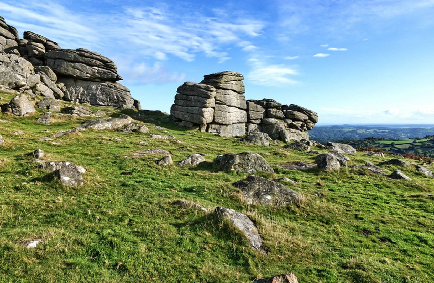 Continuing on, you'll reach Top Tor after another 4 kilometers (2.5 miles). This section of the trail involves a moderate climb, gaining approximately 150 meters (492 feet) in elevation. Top Tor is another granite formation, and from here, you can see the rolling hills of Dartmoor stretching out in all directions. The area is rich in flora, including heather and gorse, which bloom vibrantly in late summer.