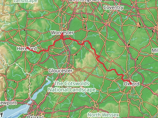 A gentle 9.3 km loop starting near Herefordshire’s countryside, this easy hike takes about 2 hours 10 minutes and is suitable for most fitness levels. With around 170 m of elevation gain and 180 m of descent, the route offers mild hills, open farmland views, and quiet rural lanes. Starting and ending close together, it’s an accessible walk for enjoying peaceful landscapes and classic Herefordshire scenery. There is a pub and a cafe on route for refreshments.