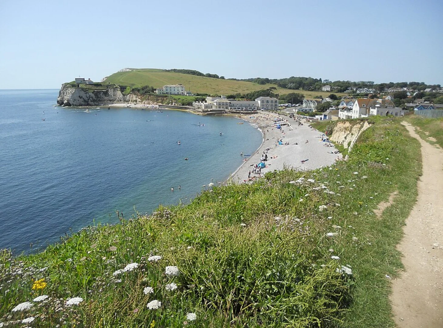 To reach the trailhead, you can drive or use public transport. If driving, head towards Freshwater Bay, where parking is available. For public transport, take a bus to Freshwater Bay from Newport, the main town on the Isle of Wight. The nearest significant landmark to the trailhead is Freshwater Bay House.