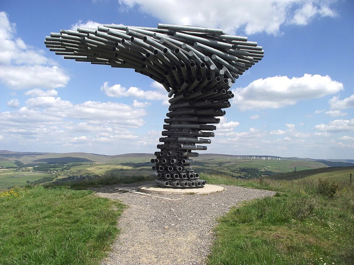 Around the 7 km (4.3 miles) mark, you'll reach the highlight of the trail: the Singing Ringing Tree. This unique, wind-powered sculpture produces eerie, melodic sounds as the wind passes through its metal pipes. Standing at this vantage point, you'll have sweeping views of Burnley and the surrounding moorlands. The elevation here is approximately 300 meters (984 feet), making it the highest point of your hike.