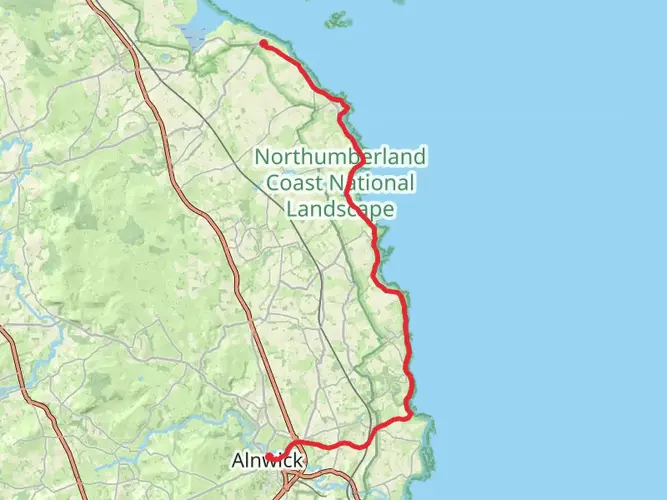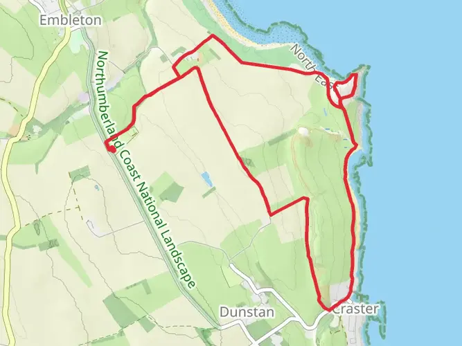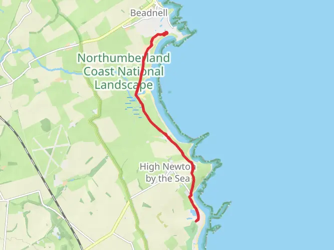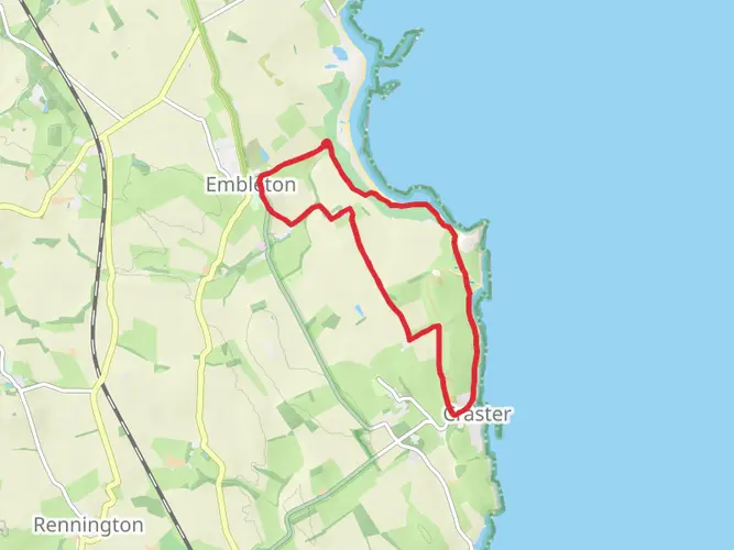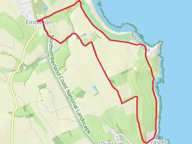An easy 6.6 km point‑to‑point walk through the Northumberland countryside, this route gently descends with about 34 m of ascent and 60 m of descent over roughly 1 hour 25 minutes. Starting near 55.5157, -1.6206 and finishing close to 55.4719, -1.5912, it follows quiet rural lanes and paths, offering open farmland views and big skies typical of coastal Northumberland, making it ideal for relaxed walkers and families.