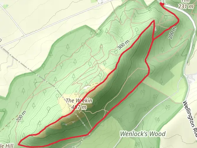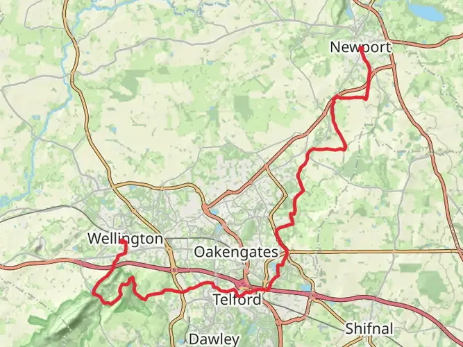 An easy circular hike starting and ending near Telford and Wrekin, covering about 3.7 miles with gentle ups and downs (around 493 ft of gain and 556 ft of descent). The route offers relaxed walking on mostly straightforward paths, ideal for beginners or a casual outing. Expect a mix of open views and local countryside character, with subtle elevation changes that add variety without being demanding.