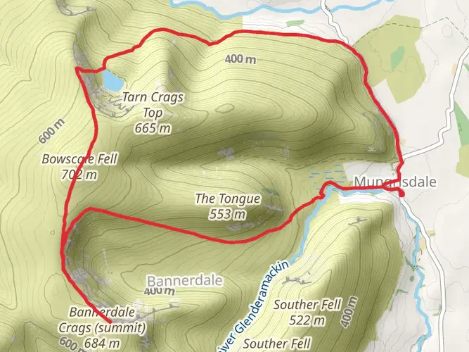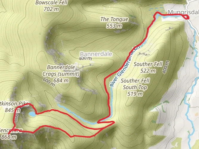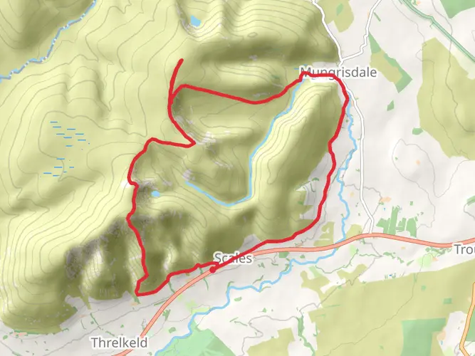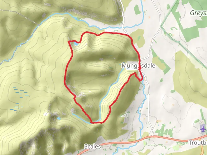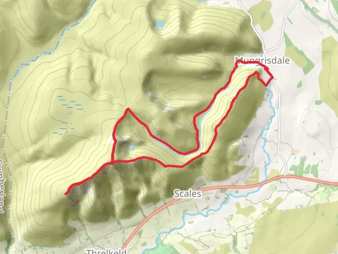 Challenging circular hike from Mungrisdale covering about 26.2 km with significant ascent (≈1,197 m) and descent (≈1,252 m). Expect steep, sustained climbs and rough, exposed terrain suited to experienced hikers with good fitness. The route explores the quiet northern Lake District fells, offering wide views over Blencathra and neighbouring valleys before returning to the village start point.