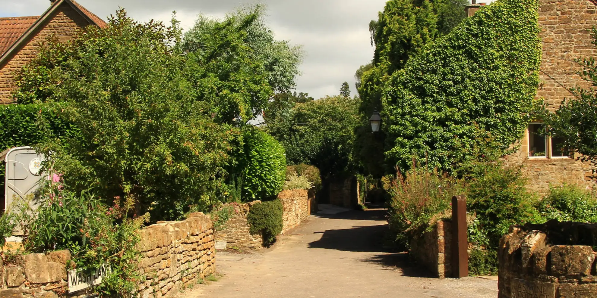 The trail meanders through a variety of landscapes, including rolling hills, dense woodlands, and open fields. You'll encounter picturesque English countryside, complete with traditional dry stone walls and hedgerows that are characteristic of the region.