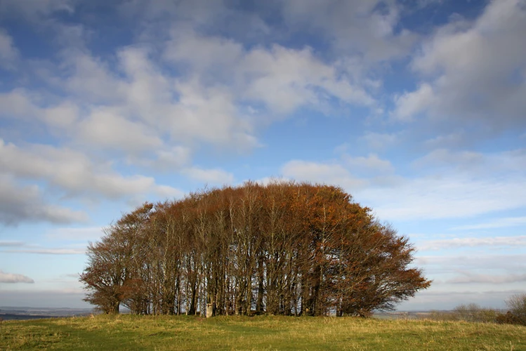 At approximately 1.5 km (0.9 miles) into the hike, you will reach the summit of Win Green Hill. This spot offers panoramic views of the surrounding countryside, including the Blackmore Vale and the distant Isle of Wight on a clear day. The hill is crowned with a distinctive clump of beech trees, known locally as the "Beech Clump," which is a notable landmark.