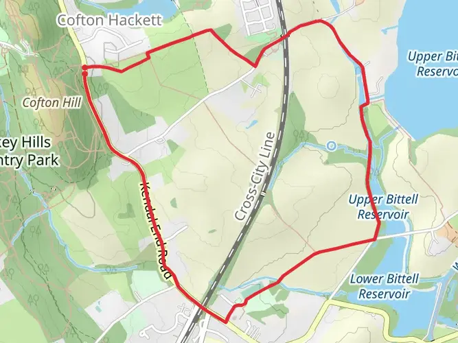 This easy 5.0 mile loop from Barnt Green offers a gentle outing with about 300 ft of total elevation change, making it suitable for most walkers. The route undulates through suburban lanes and green spaces, with occasional open views and quieter stretches away from traffic. Short climbs and descents add mild variety without feeling strenuous, and the start and end points are close together, making logistics simple.