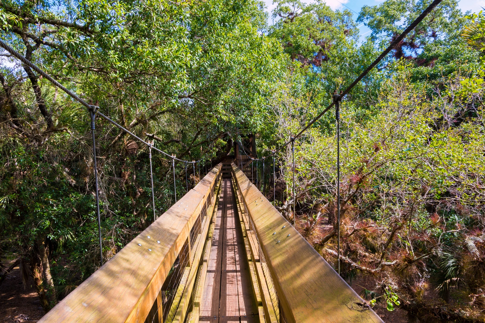 Approximately 10 kilometers (6 miles) into the hike, you'll encounter the Canopy Walkway, a suspension bridge and tower that offers a bird's-eye view of the surrounding forest. Further along, the trail skirts the edge of the Myakka Lake, providing picturesque views and opportunities for spotting waterfowl.