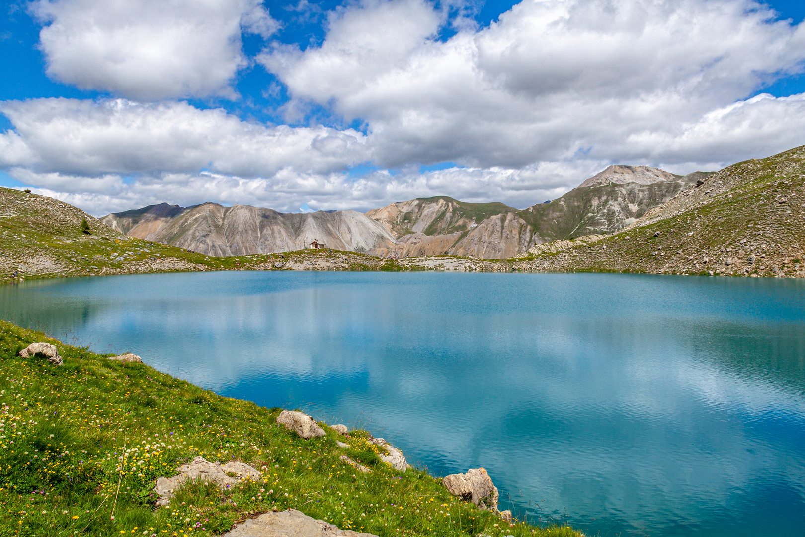 The trail boasts a variety of landmarks, including the impressive Aiguilles de Chambeyron, towering rock formations that are a highlight of the region. As you ascend further, the vegetation thins, and the landscape opens up to reveal alpine meadows dotted with wildflowers in the spring and summer months.