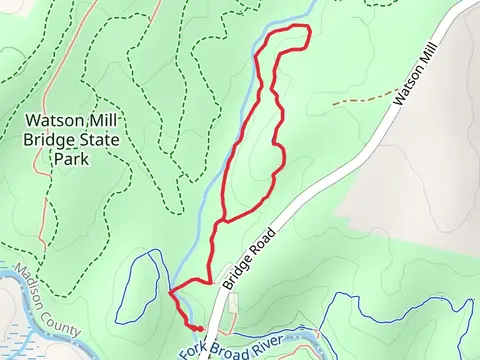 Loop along South Fork Broad River. The longest trail is the