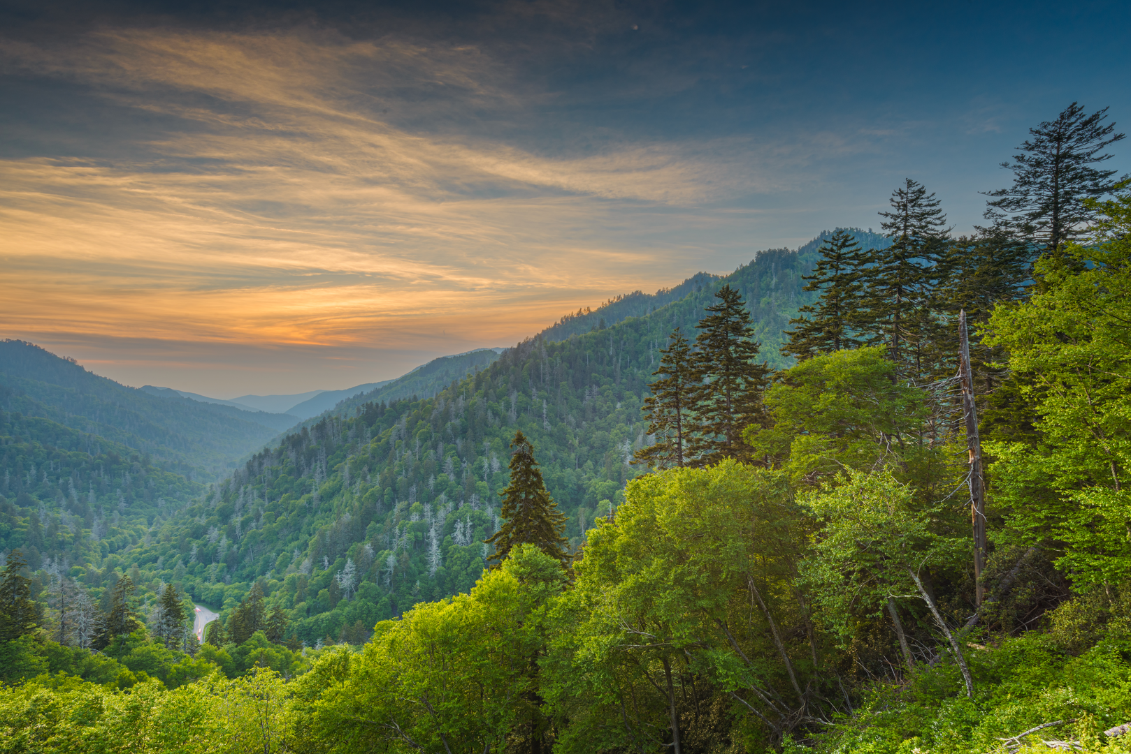 Further along, at approximately 109 miles (175 km), hikers reach the highest point on the entire Appalachian Trail at Clingmans Dome, standing at 6,643 feet (2,025 meters). The observation tower atop provides a 360-degree view of the surrounding Smoky Mountains.