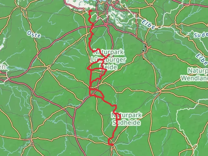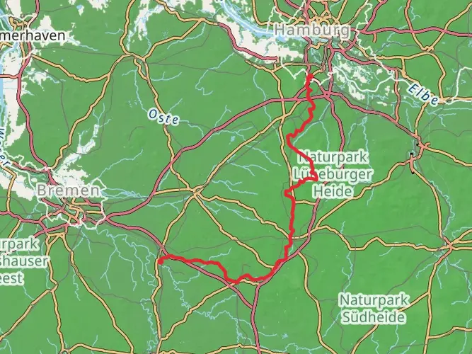 Deutschland-Ticket Hike between stations Handeloh and Buchholz i.d.N. An easy custom route runs roughly along the Heidscnuckenweg trail in northern Germany. With virtually no elevation change recorded, it’s a flat, accessible outing suitable for beginners and relaxed walkers. Expect gentle terrain, open fields, and scattered woodland typical of the Lower Saxony countryside, making it a calm path for short strolls, photos, or casual exploration.
