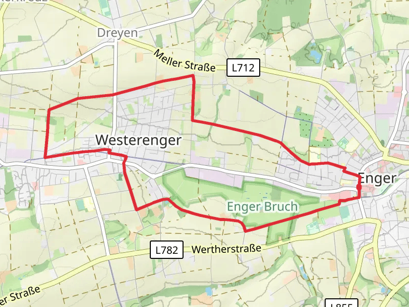 Hiddenhausen, Bustedter Wiesen and Oetinghausen Loop at 16.9 km. For a shorter adventure you can try the