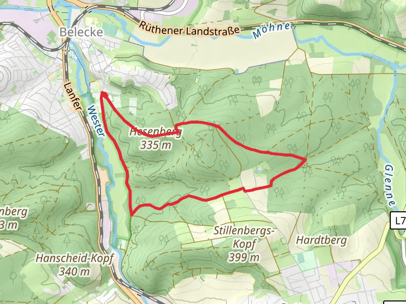 Hirsche Loop via Sauerland Waldroute at 1.9 km. Get off line access to Restaurant, History, Peak, and Shelter locations and much more with a Hiiker subscription.