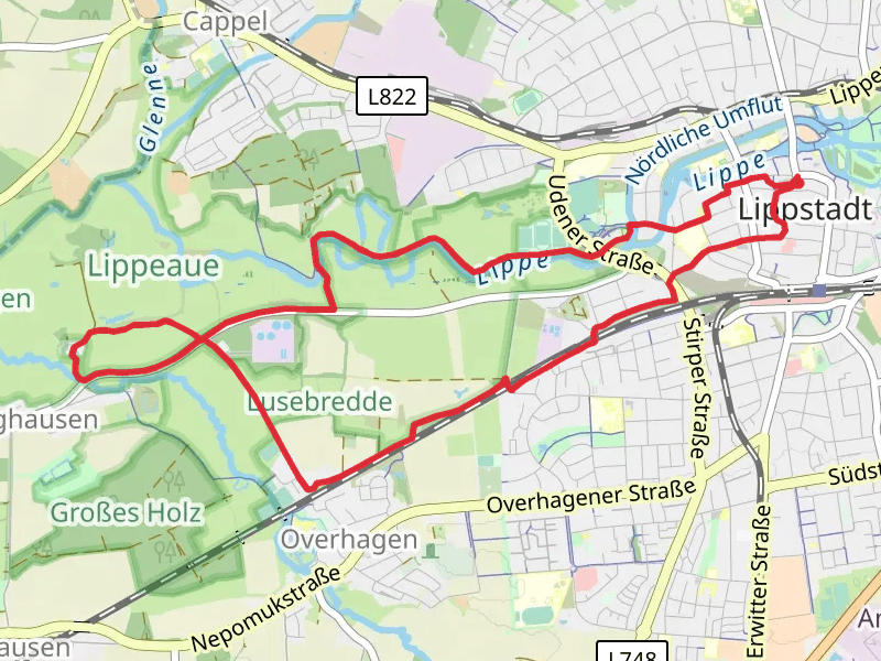 Lippe via Bezirksrundweg Moehne. The longest trail is the
