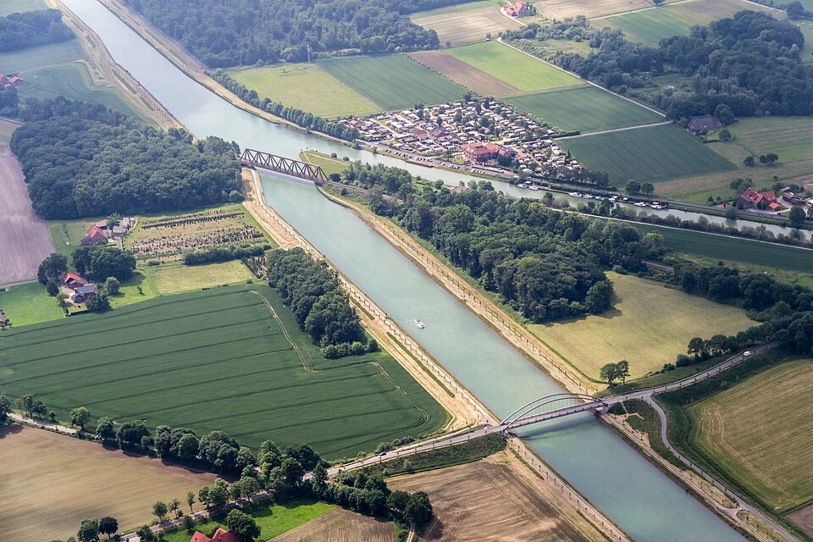 #### Dortmund-Ems-Kanal The trail initially follows the Dortmund-Ems-Kanal, a significant waterway in the region. This canal, completed in the late 19th century, played a crucial role in the industrial development of North Rhine-Westphalia. As you walk along the canal, you'll notice the serene waters and occasional barges, offering a glimpse into the area's industrial past.