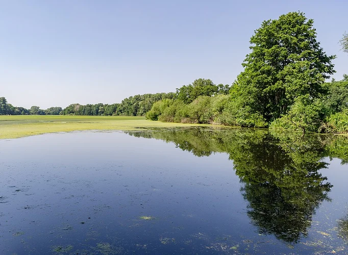 #### Windmühlenbruch Lake At approximately 1 km (0.62 miles) into the hike, you'll reach Windmühlenbruch Lake. This tranquil spot is perfect for a short break, allowing you to soak in the natural beauty and perhaps snap a few photos. The lake is also a popular spot for local anglers.