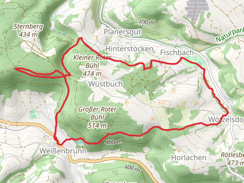 Buckenreuth to Staatsbruch Walk and the trail with the least amount of climbing is the
